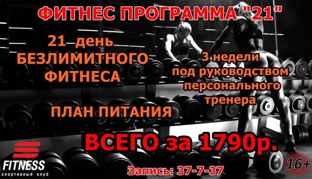 Также вы можете принять участие в фитнес-программе «21» всего за 1 790 рублей от клуба «С-фитнес».