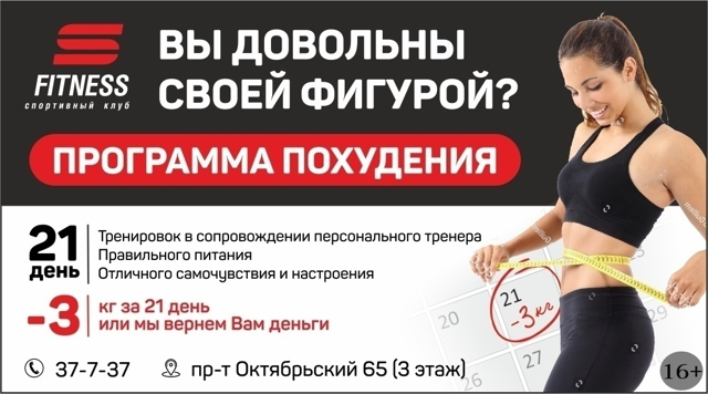 Спортивный клуб «С-фитнес» приглашает великолучан принять участие в на фитнес-программе «21» (16+): Минус 3 килограма гарантировано! Стоимость программы 1 790 рублей.
