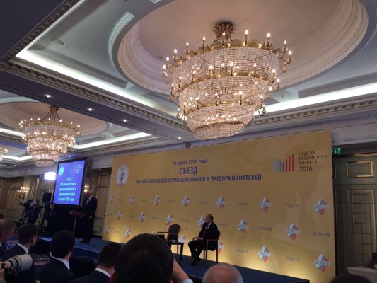 24 марта Владимир Путин выступает на пленарном заседании съезда Российского союза промышленников и предпринимателей и принимает участие в беседе с членами РСПП.