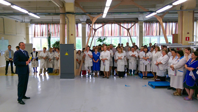 «Мне очень приятно встретиться с коллективом псковского предприятия, которое выпускает массовую продукцию, известную по всей России. Мы создали в нашей области движение «Свое», чтобы рассказывать широким слоям населения о местных предприятиях, на одном из которых работаете вы. В движение уже влились более 150 предприятий со всей районов региона. Нам есть чем гордиться. У нас выпускается много уникальных продуктов. Мы хотим показать, что у нас есть и развивается свое производство, и, возможно, кто-то даже решит связать с ним свою жизнь», - отметил в своем выступлении Александр Козловский.