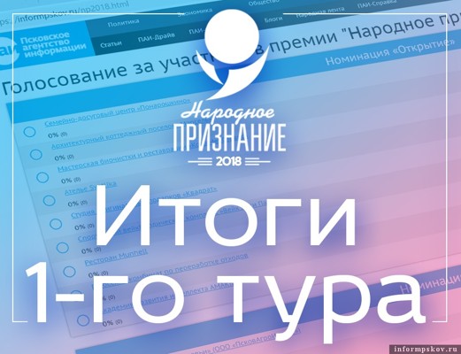 По итогам первого тура голосования за соискателей общественной премии Псковской области «Народное признание — 2018» три претендента, выдвинутых общественным движением «Своё!», вышли в финал и продолжат борьбу во втором туре.
