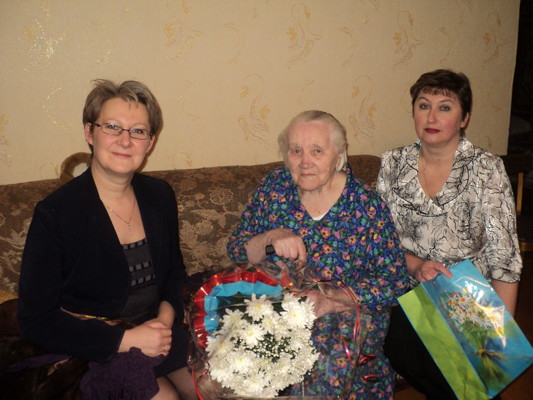 - Спасибо огромное, нам очень-очень приятно. Мы ценим такое внимание властей, - принимая цветы и подарки из рук начальника управления образования, приветствовали нас Надежда Васильевна Щеглова и её дочь – Вера Ивановна Романькова. – Уже в который раз ко мне приезжают, - обратила моё внимание Надежда Васильевна, которая совсем недавно отметила свой 90-летний юбилей.