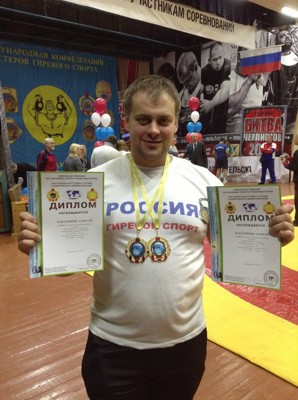 Алексей выступал в двух упражнениях, но с разным временем: это толчок двух гирь 2 и 5 минут и рывок 2 и 5 мин. За 2 минуты он толкнул гири 47 раз, за пять минут 78 раз. Рывок сделал за две минуты 63 раза, а за пять минут 102 раза. Обойдя сильных соперников на 3-4 очка, он стал четырехкратным чемпионом и рекордсменом чемпионата Евразии.