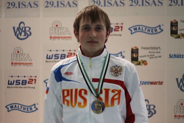 Причём, как само собой разумеющееся и ставшее привычным, он не только принял в них участие, а вновь вошёл в число призёров. В стрельбе из малокалиберного пистолета на 50 метров среди юниоров призеры были определены по итогам квалификации. Россиянин Павел Юдин, набравший 532 очка из 600 возможных, завоевал бронзовую медаль. Первое место занял представитель сборной Украины Павел Коростылов (554 очка). На второй ступени пьедестала один украинский спортсмен Алексей Сидоренко (534 очка).