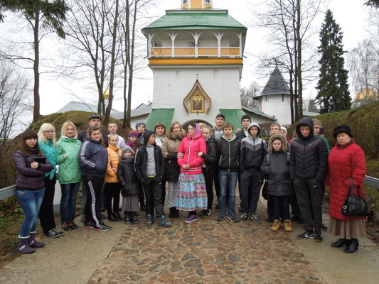 И победить в этой брани может только Христос – Спаситель, помощь которого мы получаем в таинствах Исповеди, Причащения и молитве. Это и стараемся донести мы до сознания наших ребят на занятиях клуба «Истоки». В этой работе нам большую поддержку и помощь оказывали и оказывают священники нашего Храма Вознесения Христова о. Антоний Татаринцев и о. Дмитрий Соловьев. Особенно актуальными для наших ребят из года в год являются занятия о скверно-словии, курении, зависимости от алкоголя и наркотиков, воровстве. Некоторые люди стремятся к быстрому обогащению с нарушением заповеди «не укради». Обычно такое богатство быстро исчезает, не принося пользы своему владельцу. Есть и другой путь к материальному достатку в жизни: исполнение Закона Божьего и честный труд. Эти и многие другие стороны жизни обсуждаются ребятами с батюшками и преподавателями центра образования. Одной из форм работы по духовно-нравственному воспитанию наших учащихся являются паломнические поездки в Святые места. 12 ноября, благодаря духовной и материальной поддержке Благочинного Великолукского округа Настоятеля храма Вознесения Христова игумена Савватия (Донченко), состоялась поездка учащихся и преподавателей центра образования по маршруту: «Свято-Успенский Псково-Печерский монастырь – погост Камно».